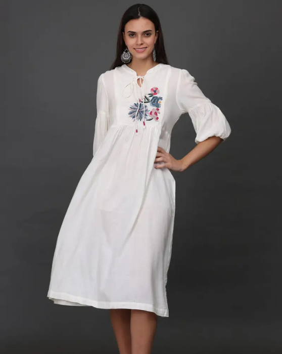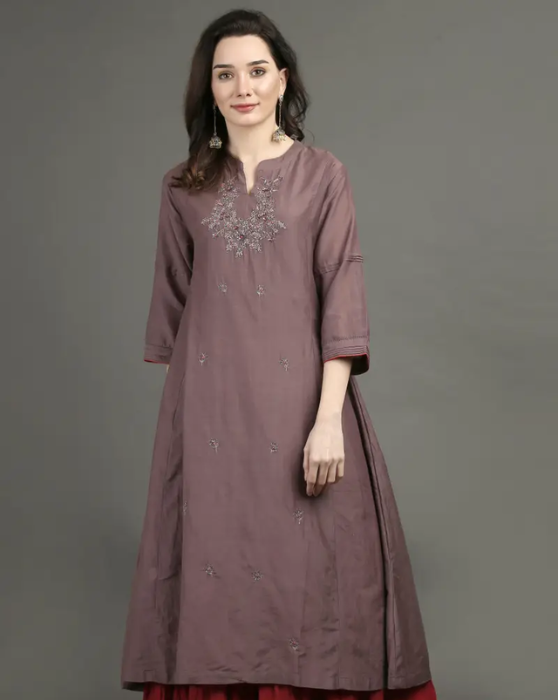 JACQUARD HAND EMBROIDERED A LINE KURTA