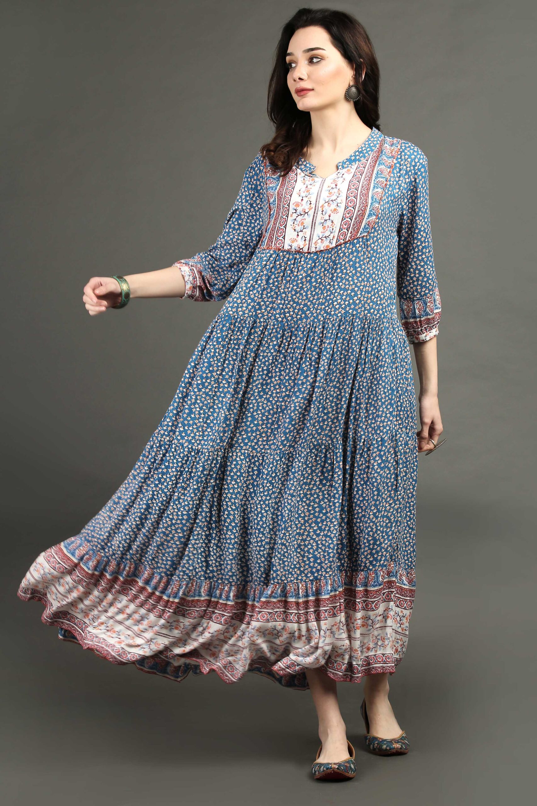 Dusty Blue Printed Bohemian Dress