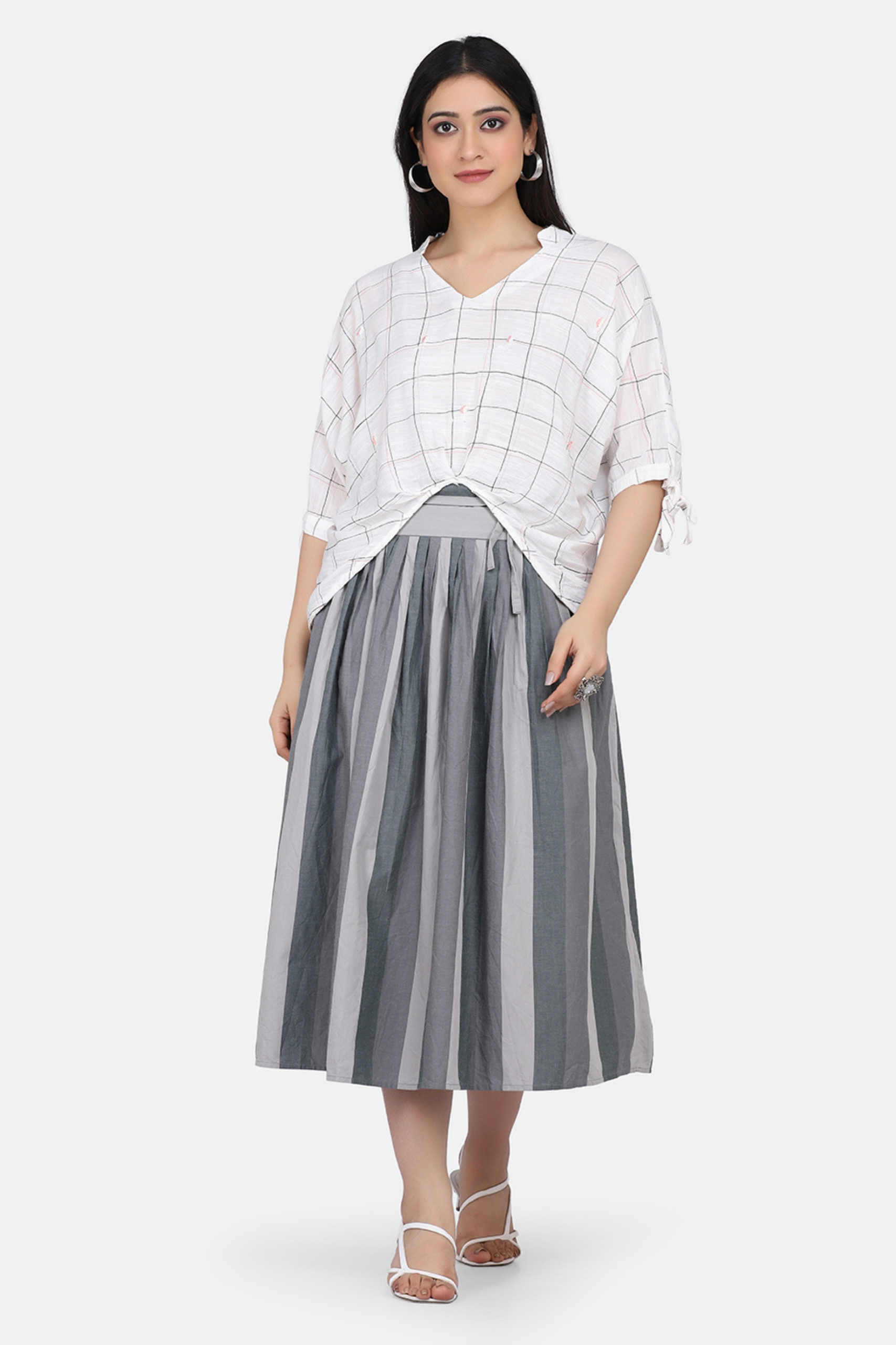 Yarn Dyed Pleated Skirt With Tie Around Waist Belt (Free Size)