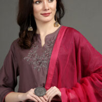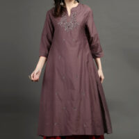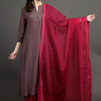 COTTON SILK HAND EMBROIDERED A LINE KURTA , PANTS & DUPATTA (SET OF 3)