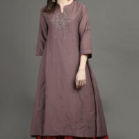 Delicate Hand Embroidered Silk Chanderi A Line Kurta With Beige Hand Embroidered Cotton Silk Farshi (Set Of 2)