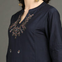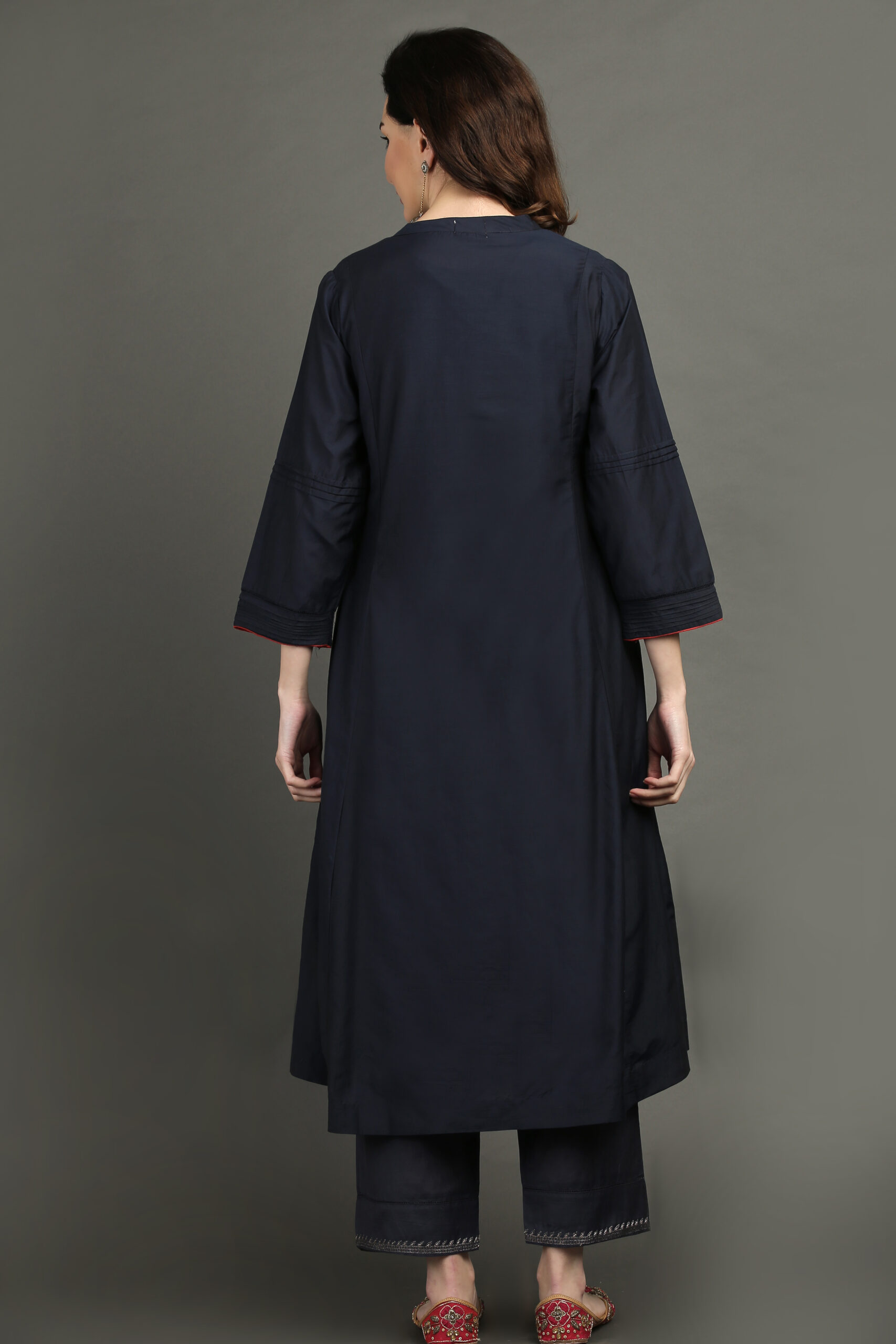 < class="product-title">Delicate Zardozi Hand Embroidered Cotton Silk Navy A Line Kurta>