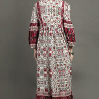 Coral Yarn Dyed Hand Embroidered Tiered Dress