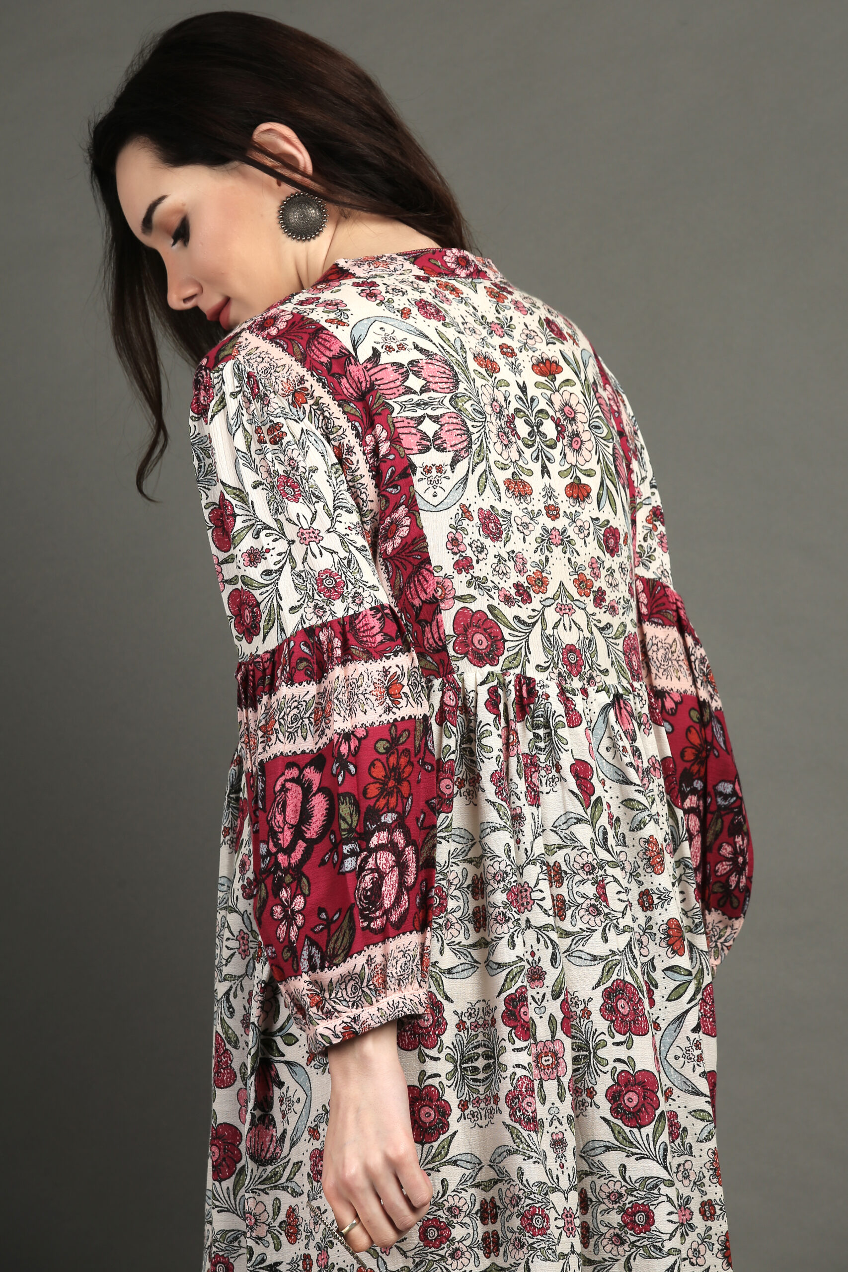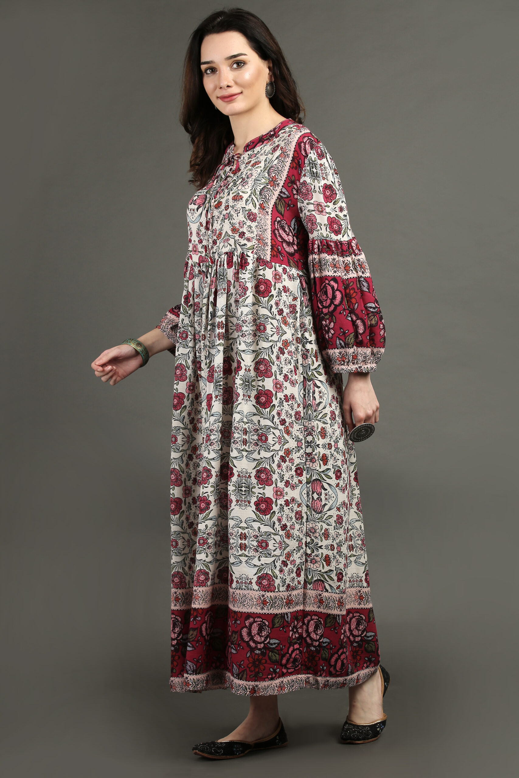 < class="product-title">Raspberry/ Off White Printed Bohemian Dress>