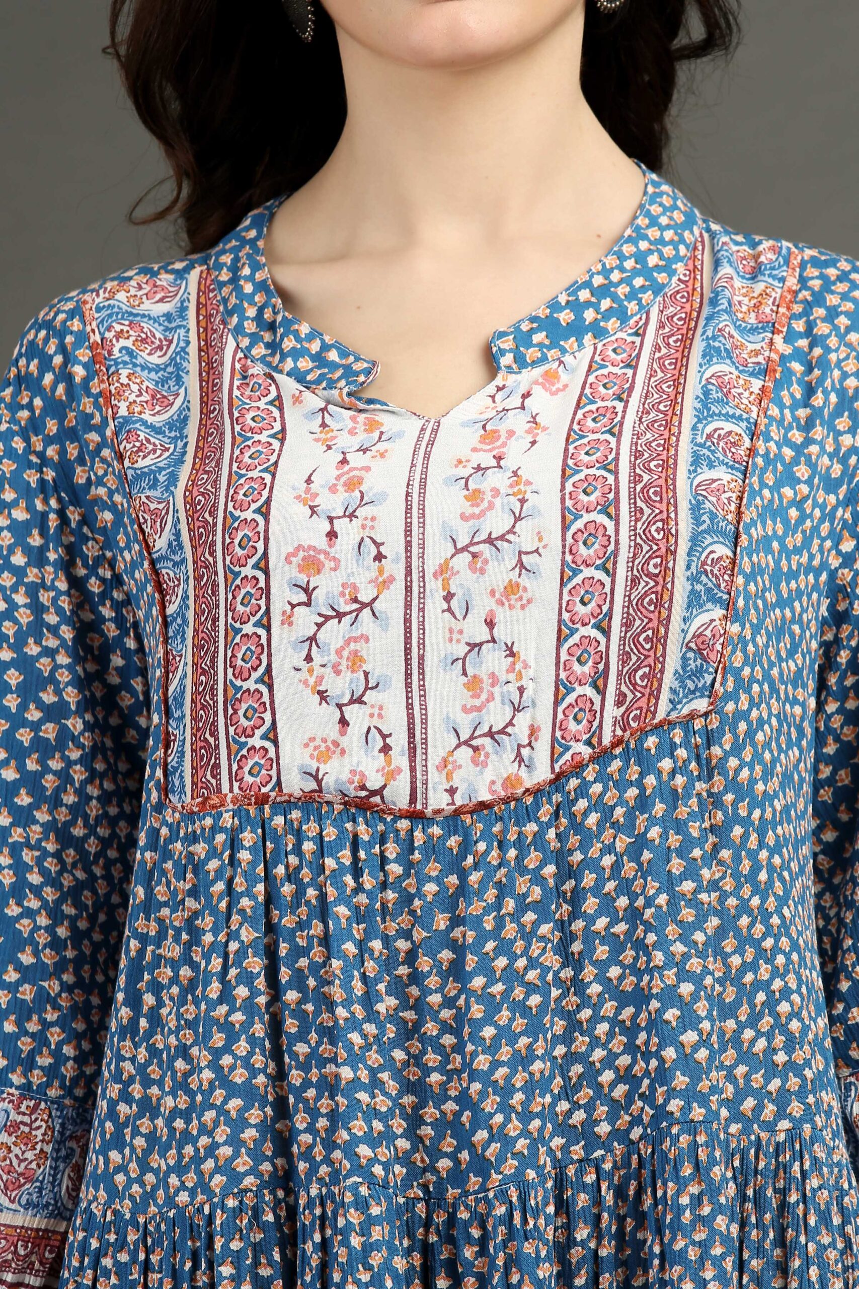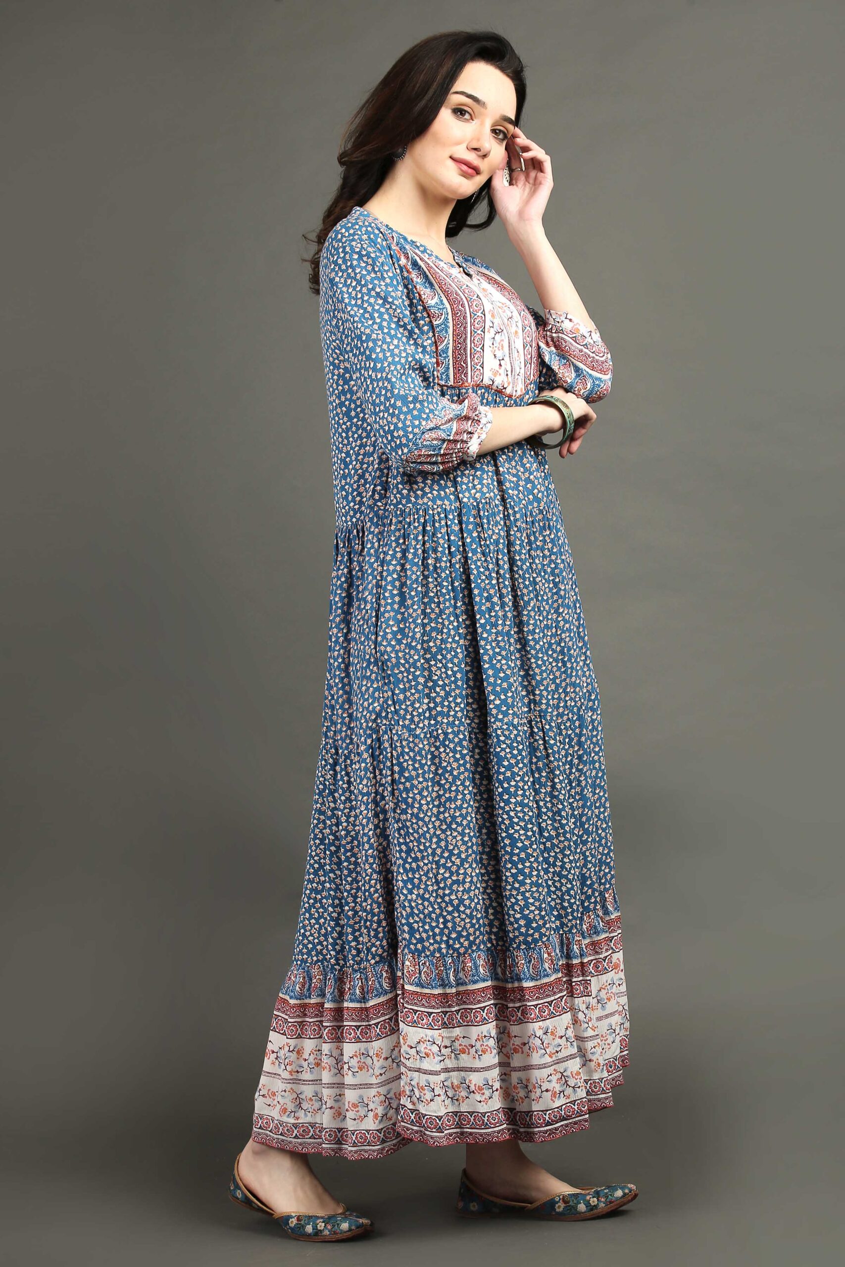 < class="product-title">Dusty Blue Printed Bohemian Dress>