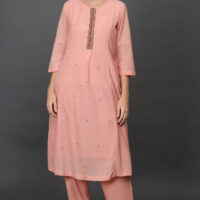 < class="product-title">FINE COTTON SILK HAND EMBROIDERED ALINE KURTA>