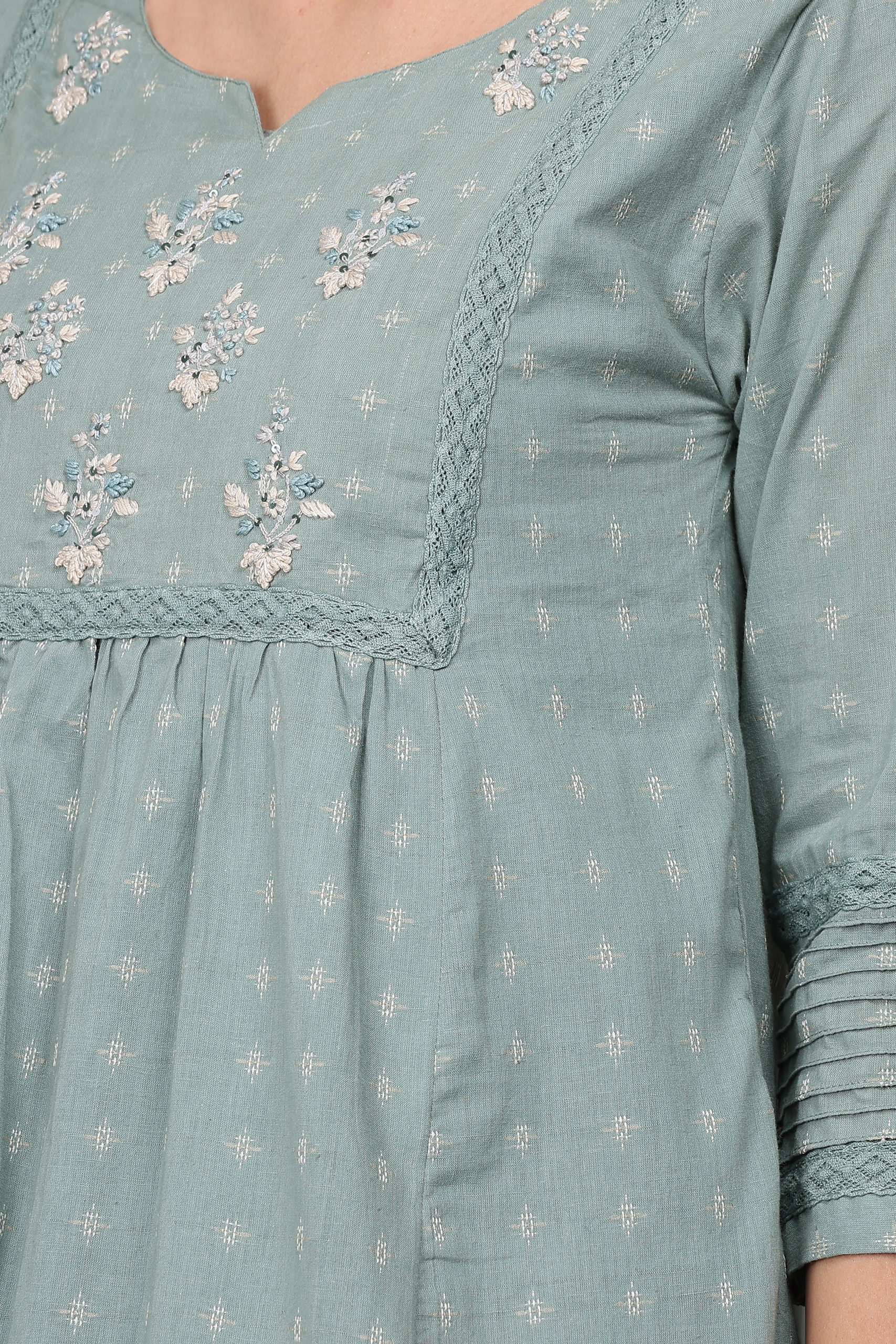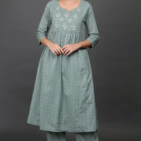 COTTON SLUB HAND EMBROIDERED A LINE KURTA