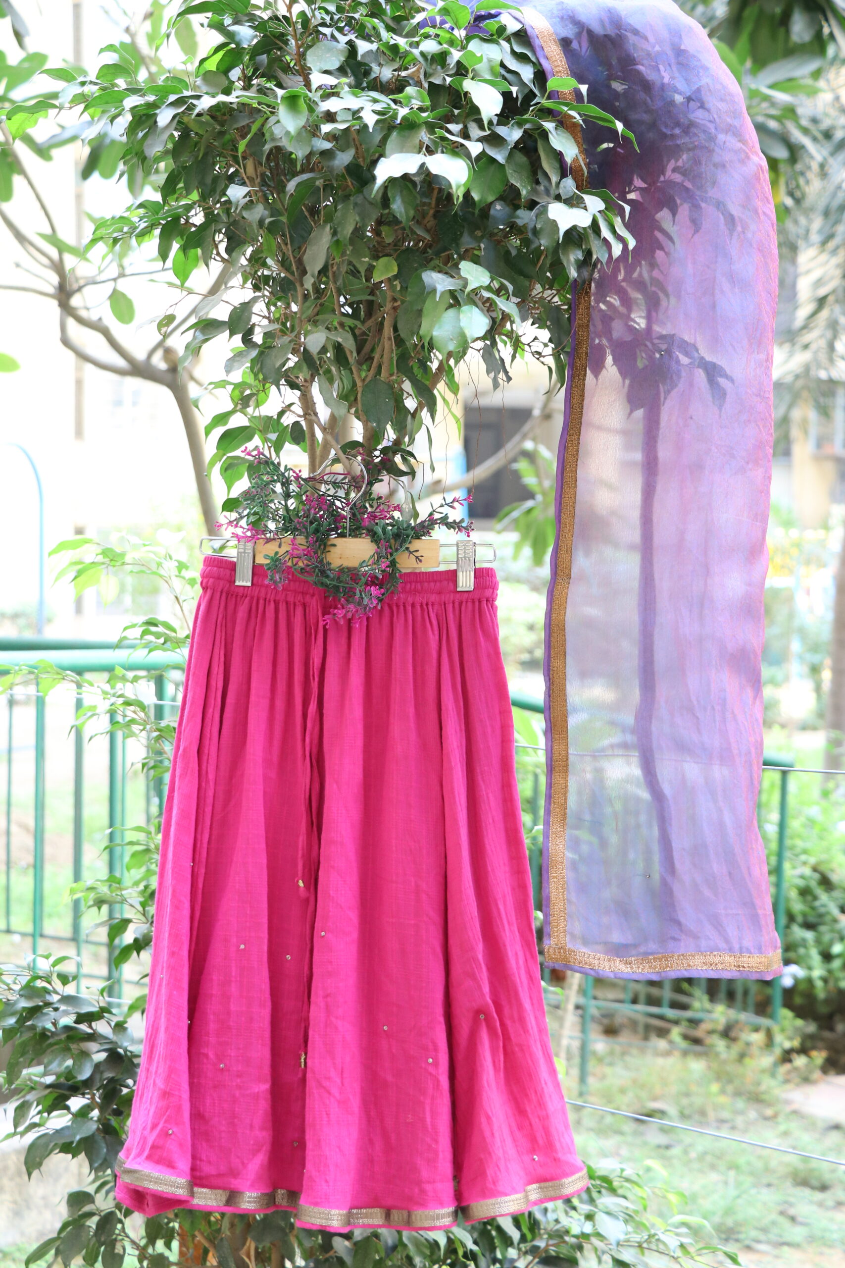 HAND EMBROIDERED COTTON DOBBY TOP, COTTON SILK SKIRT WITH LACE,HAND EMBROIDERED COTTON SILK DUPATTA WITH LACE