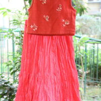 HAND EMBROIDERED COTTON SILK KEDIA BLOUSE,HAND EMBROIDERED COTTON DOBBY SKIRT WITH ZARI LACE
