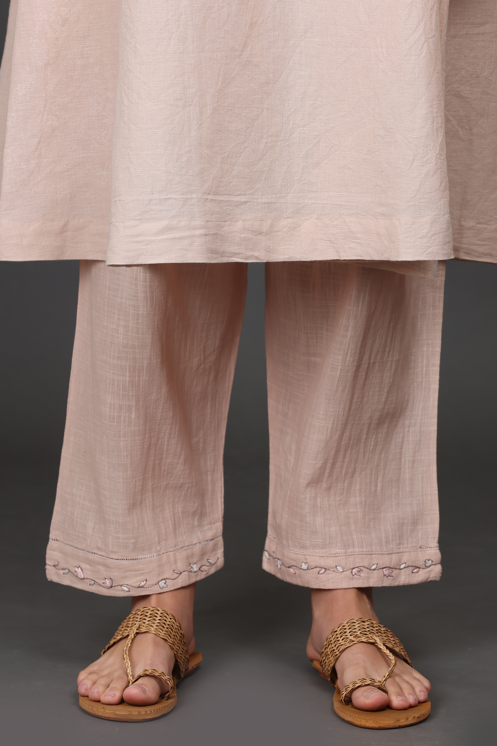 < class="product-title">HAND THREAD EMBROIDERED COTTON SLUB PANTS>