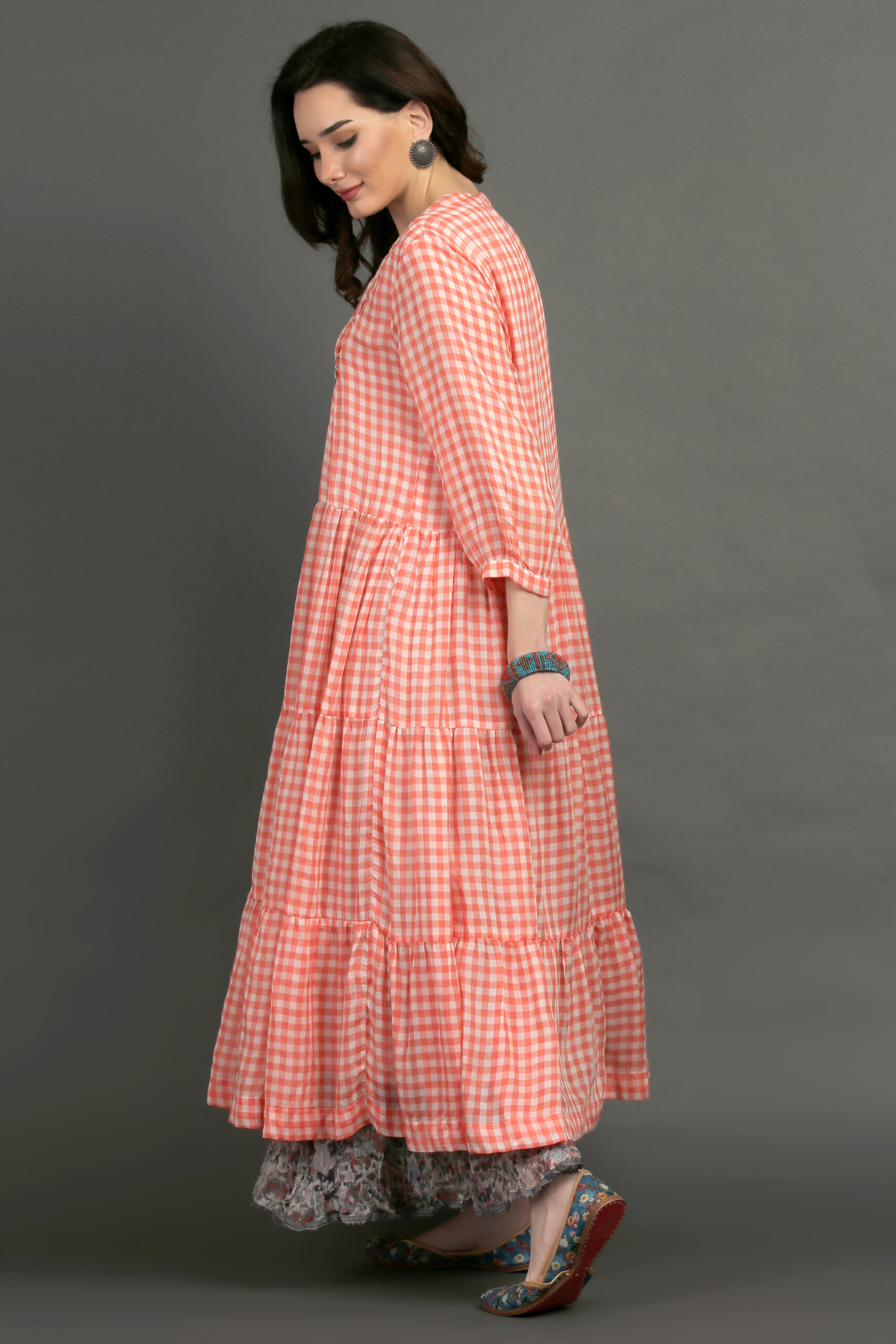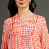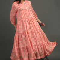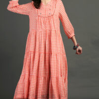 < class="product-title">Coral Yarn Dyed Hand Embroidered Tiered Dress With Cotton Slub Printed Crinkled Skir (Set Of 2)>