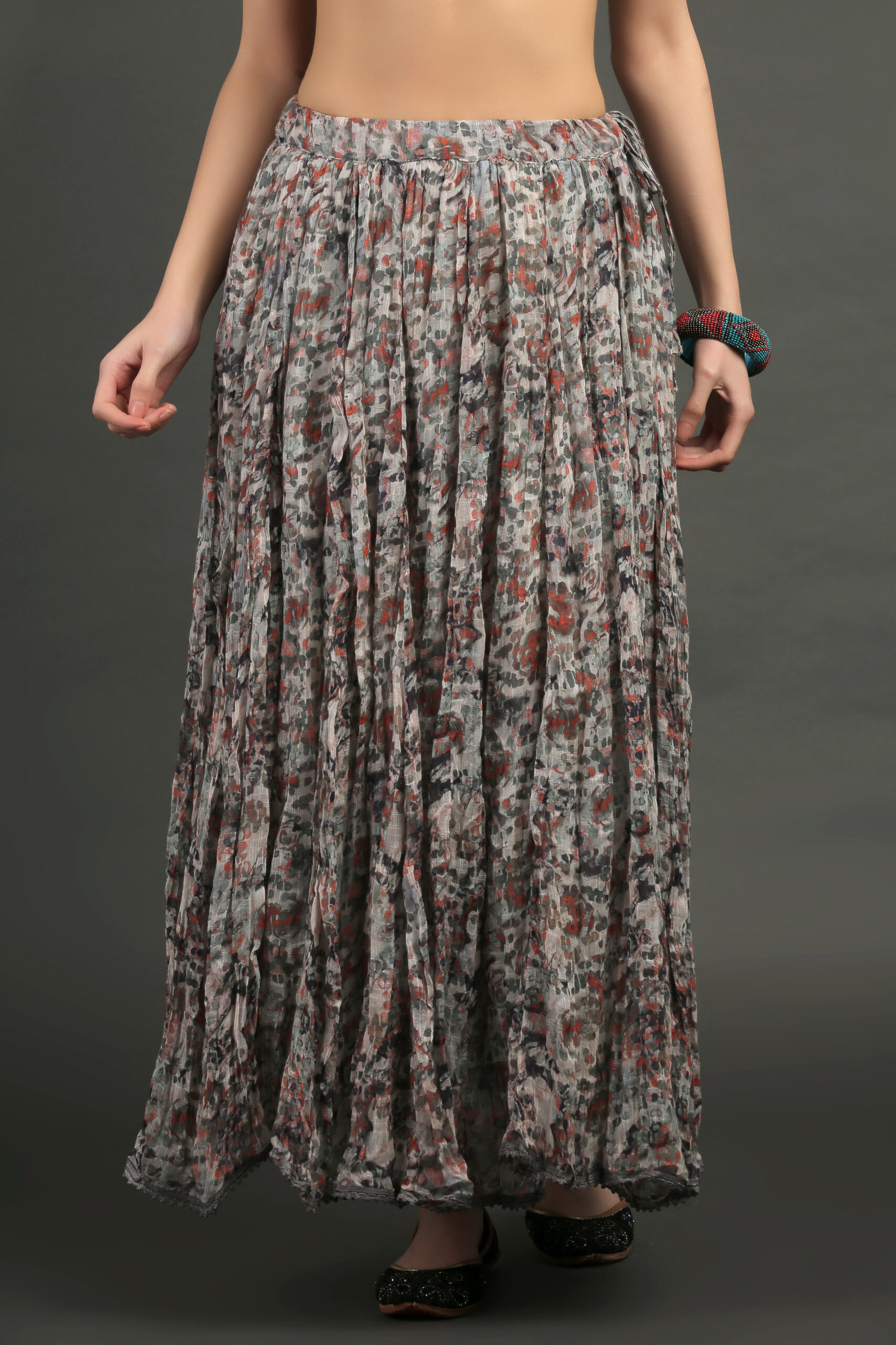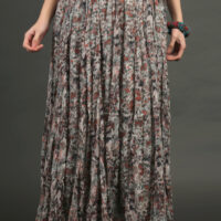 Cotton Slub Hand Embroidered Kurta With Prined Cotton Crinkled Skirt (Set Of 2)