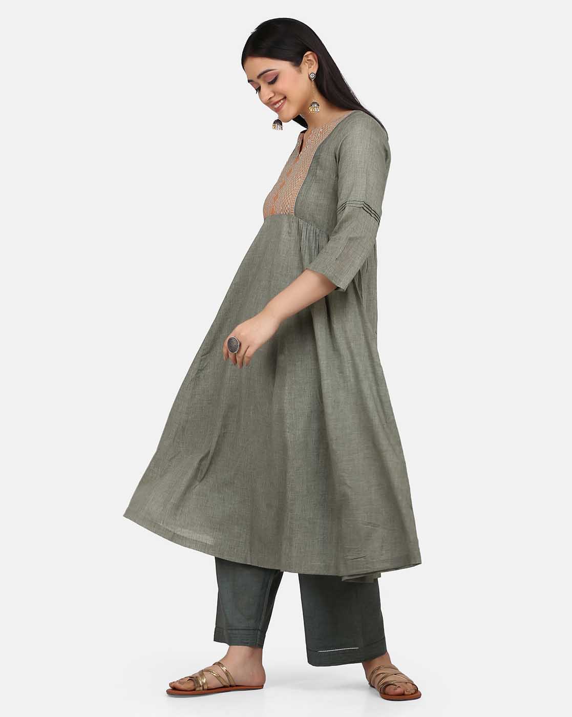 Delicate Zardozi Hand Embroidered Lined A Line Kurta