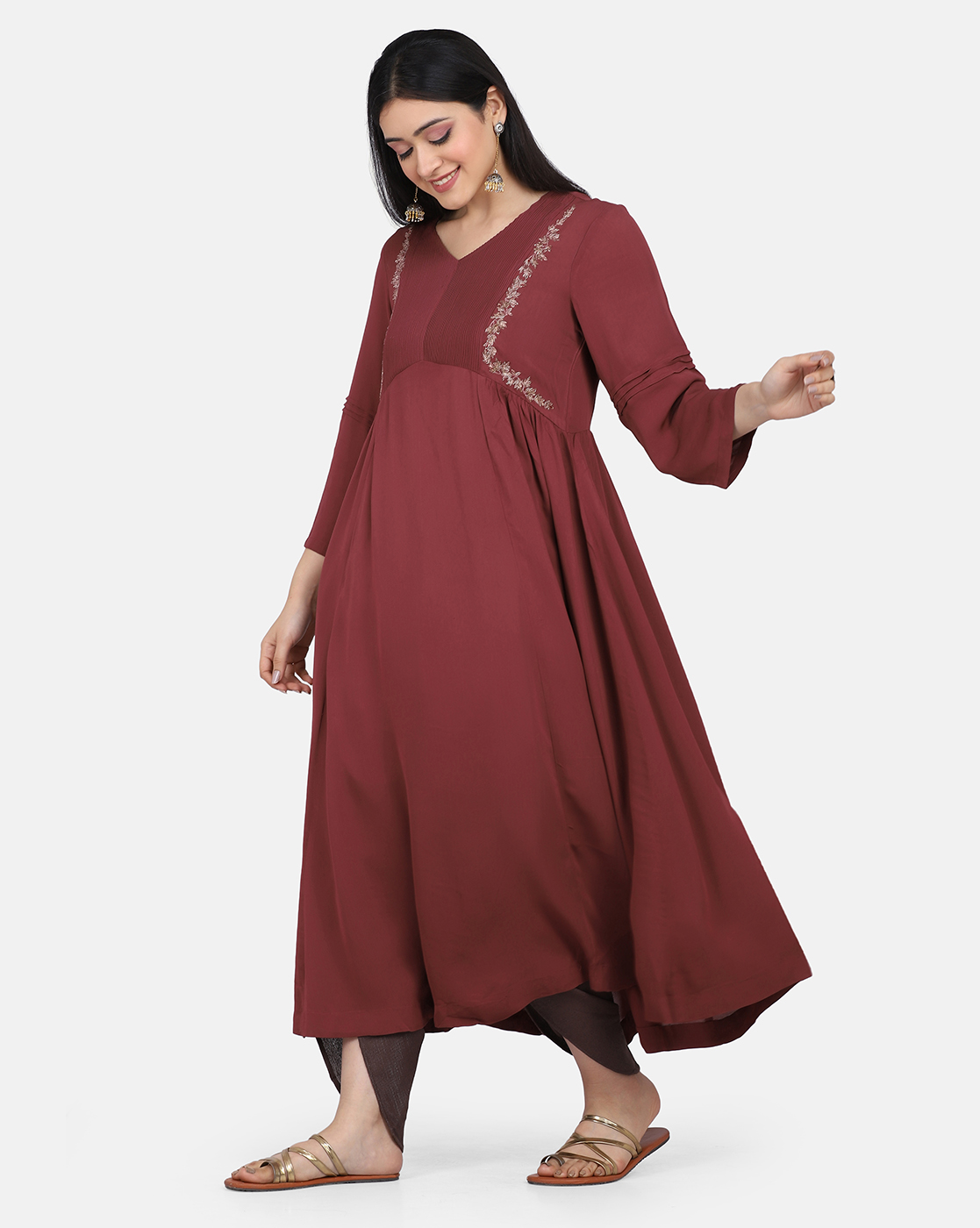 Kurta With Delicate Hand Thread Embroidery And Pintucks Detailed Yoke