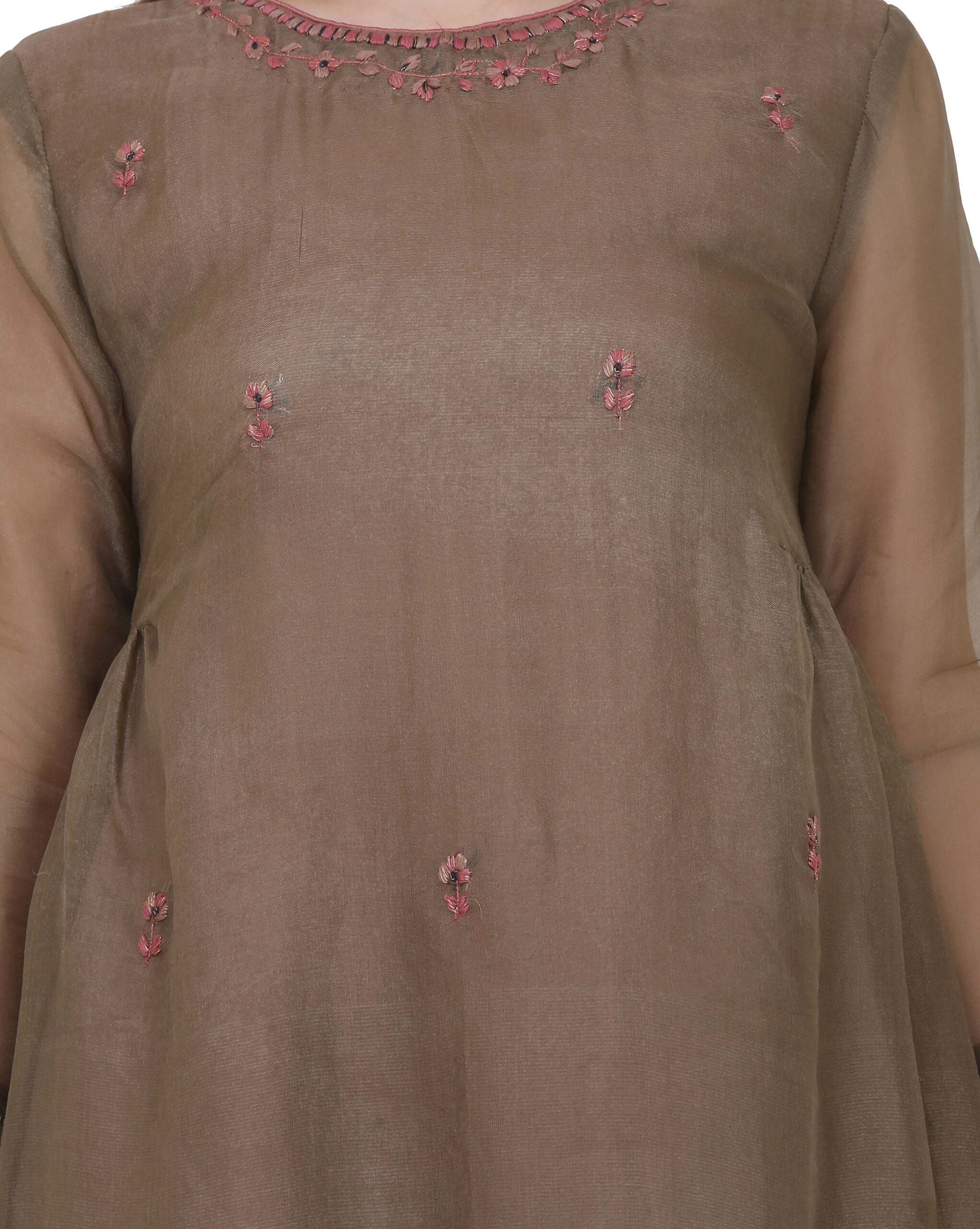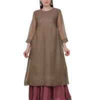 silk organza hand emb kurta with cotton lining