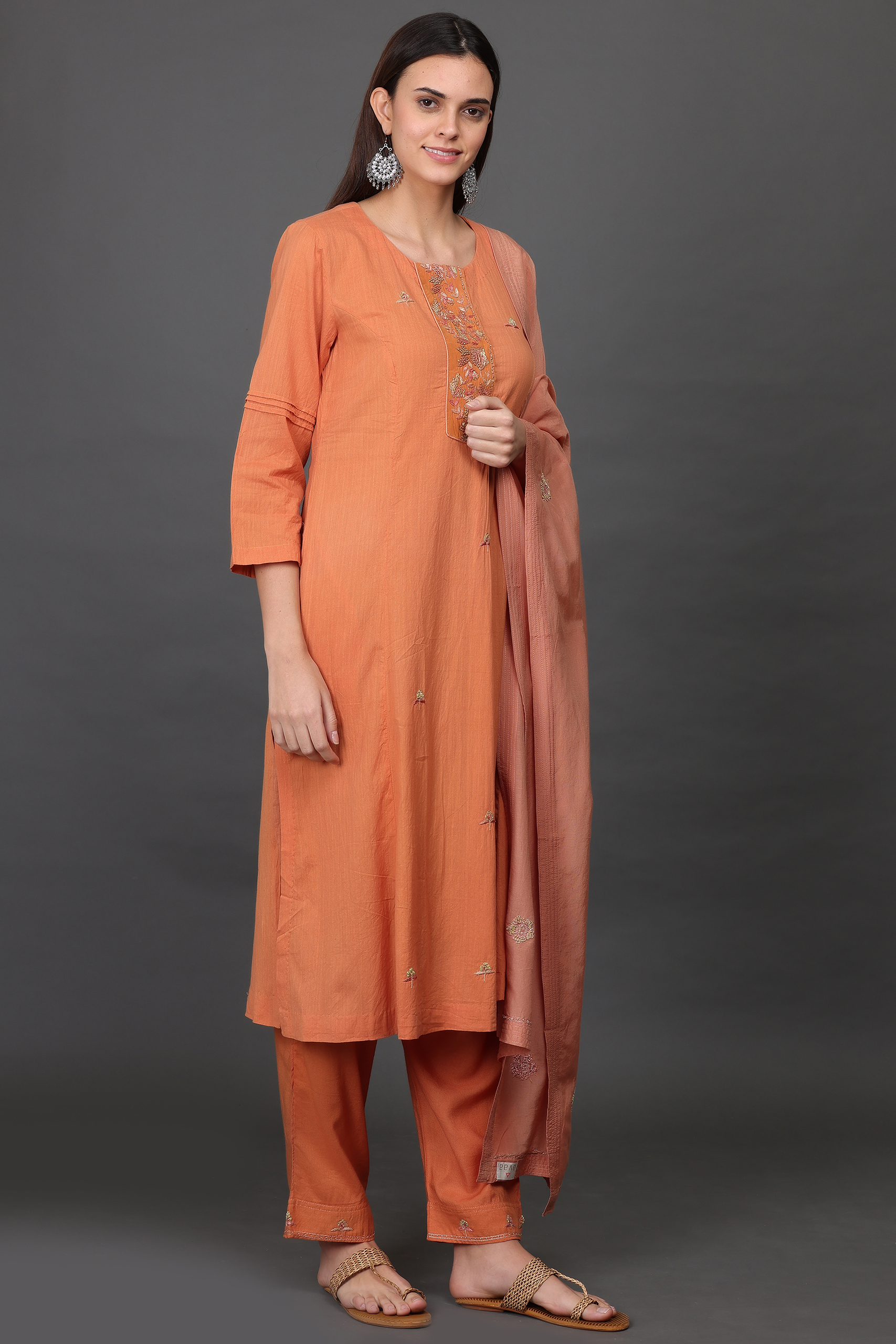 COTTON SILK, TWILL ANTIQUE, ORGANZA KURTA HAND EMBROIDERED (SET of 3)